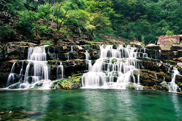 八里沟风景名胜区位于太行山南麓的深山区,距新乡市50公里,辉县市25公里,总面积42平方公里。景区内剑峰千仞,沟壑奇幽,飞瀑鸣涧,清泉潺流,林木葱茏,花草馥郁,猕猴嬉戏,群鹿呦呦。她是太行山水精粹所聚之地,兼有泰山之雄,华山之险,九寨、青城之幽,黄山、峨眉之秀,人称“太行之魂”。 八里沟风景名胜区特色是美在原始,贵在天然。主要景区有桃花渡、山神庙、羊洲地、红石河等,步移景异,各有所奇。其中八里沟大瀑布落差180米,一挂飞瀑,凌虚而下,咆哮奔腾,山鸣谷应,飞珠溅玉,异彩纷呈,磅礴多姿,气势恢弘,被誉为“华北第一瀑”。红石河源自山西,海拔1500米,故又称“太行天河”,河床为红石沙岩,光洁平莹,碧水横溢,红绿相映,色彩斑斓,明丽如画,淙淙悦耳,如梦似幻。此二处为景区精中之华,故景区形象口号为“天河奇瀑,太行之魂”。还可登太行主峰玉皇峰,东观日出,西望云海,南眺黄河九曲,北览千峰竞秀。万山偃伏此峰高,举目四观天下小。 八里沟风景名胜区年平均气温14度,三伏盛夏,午前如春,午后如秋,夜如初冬,“三伏炎热人难熬,清凉到此乐陶陶”,极宜消夏避暑。景区空气清新,沁人心脾,山泉甘甜,环境清幽,是一处"天然氧吧",山水精品画廊。“常来八里沟,能活九十九”。她是您观赏原始山水的理想胜地,休闲度假的温馨家园,回归自然的世外桃源。八里沟人将以饱满的热情,优质的服务,诚邀四海嘉宾至,笑迎五洲游客来。