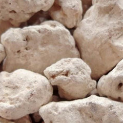 【药物形态】不规则的块状,常扁平,亦有多角形或近圆形,大小不一。表面灰白色或淡红色,粉性,不透明,常有较大的凹陷和大小不等的蜂窝状孔隙。体轻,易碎,断面颗粒状,灰白色或浅土黄色,有的具黄白相间花纹。气微,味微涩。