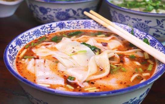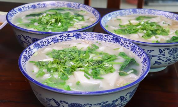 羊骨羊肉熬炖的汤,色白味厚,飘香四溢。方城烩面讲究汤鲜浓郁、面薄筋道,既是手艺、材料的硬实。长江烩面汤香味浓,面薄筋道,入口软滑,是方城老牌烩面之一。