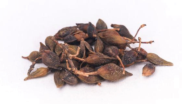 【药材形态】呈长卵形至卵形,稍扁,长1.5~2.5cm,直径0.5~1.3cm。表面有不规则的纵皱纹及多数凸起的小斑点,两面各有1条明显的纵沟。顶端锐尖,基部有小果梗或已脱落。青翘多不开裂,表面绿褐色,凸起的灰白色小斑点较少,质硬;种子多数,黄绿色,细长,一侧有翅。老翘自顶端开裂或裂成两瓣,表面黄棕色或红棕色,内表面多为浅黄棕色,平滑,具一纵隔;质脆;种子棕色,多已脱落。气微香,味苦。