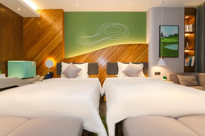 果岭19号酒店(南阳七一路店)位于七一路南阳市市委西边约200米,交通便利、环境优雅。酒店是以高尔夫为主题,立足南阳面向全国发展的中高档有限服务连锁酒店,新颖、浪漫、现代、休闲注重自由自在的商务体验。酒店投资近两千万元全新装修,2020年10月隆重开业,拥有各式小度AI智能客房60余间.房间安装全智能语音客控系统,全智能中央空调和高效新风系统,酒店区域高速免费WI-FI全覆盖,配备65寸超大屏4K高清电视,酒店一楼大厅有供贵宾免费的茶室、茶吧等休息大厅。酒店高新店独辟蹊径,营造出如徜徉在艺术馆般恬静而诗意的氛围,提供温馨、舒适体贴入微的亲情服务,别具一格的设施,个性化的高端服务营造艺术观的旅居体验,确立了无法复制的品牌形象,力争成为业界瞩目的焦点。