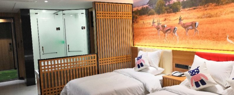 酒店位于华山路与枣林街交叉口向东约30米路南,周围生活配套齐全,外出购物、就餐方便。酒店附近有枣林服装城,市场繁荣!且临近理工大学、五中、学风浓郁!向北毗邻白河湿地公园,淘气猫是休闲娱乐的好去处!这是一家以动物、城市夜景、绿色树林为主题,既个性十足又极富内涵的特色精品酒店,拥有多种绿色生态房型,环境优雅、舒适,是高品味生活的优选之地。为更好地服务客人,酒店免费提供纯净水、时令水果、健康糕点、品种多样的营养早餐、免费洗衣、免费熨烫、免费停车场免费洗车服务,24小时热水供应,24小时中央冷暖空调,百兆光纤,50英寸高清电视……贴心的精致服务,给您不一样的超凡体验!